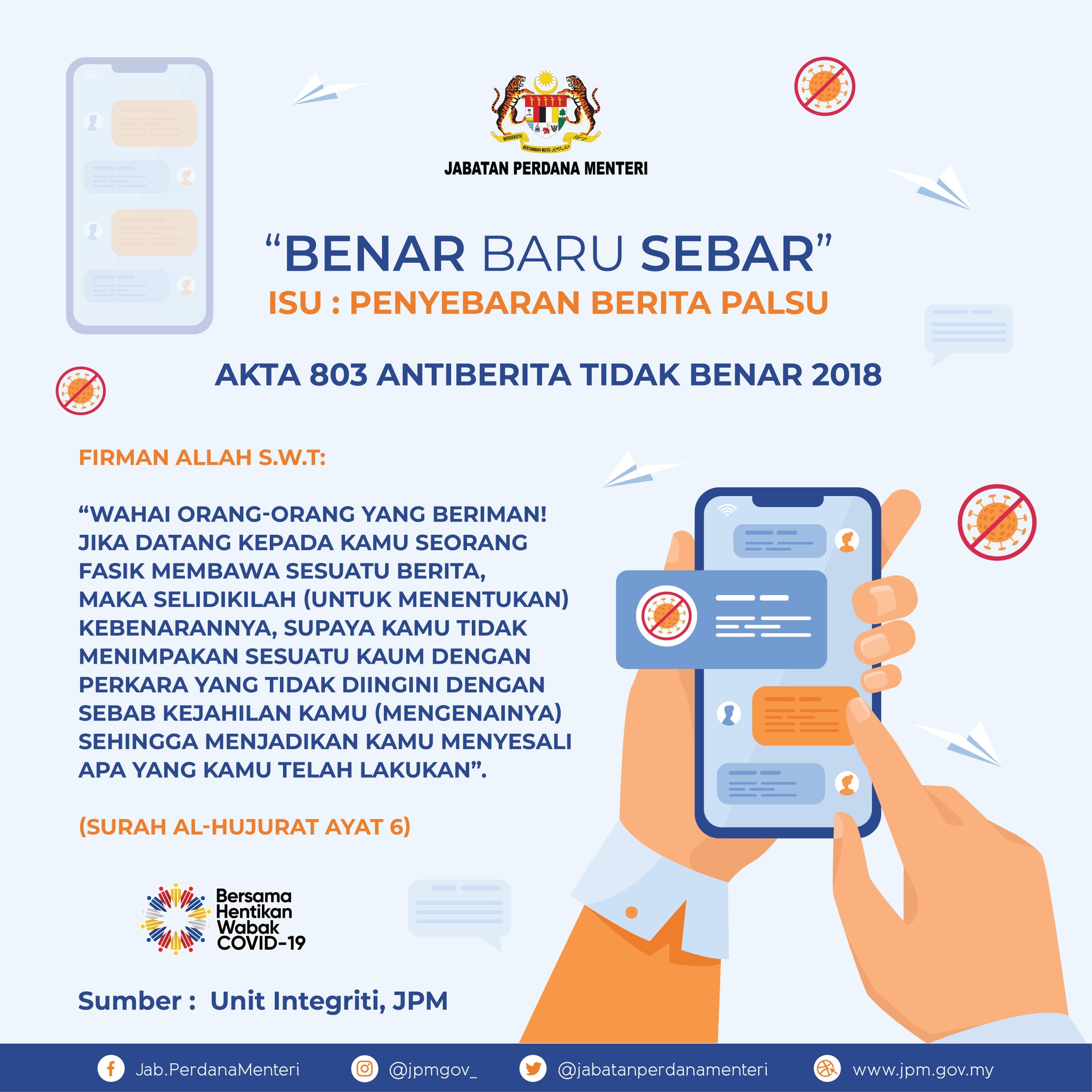 Jabatan Perdana Menteri No Twitter Mesej Integriti Jpm Februari 2021 Minggu Kedua Benar Baru Sebar Isu Penyebaran Berita Palsu Akta 803 Antiberita Tidak Benar 2018 Sumber Unit Integriti Jpm Https T Co 7epou00aeo Twitter